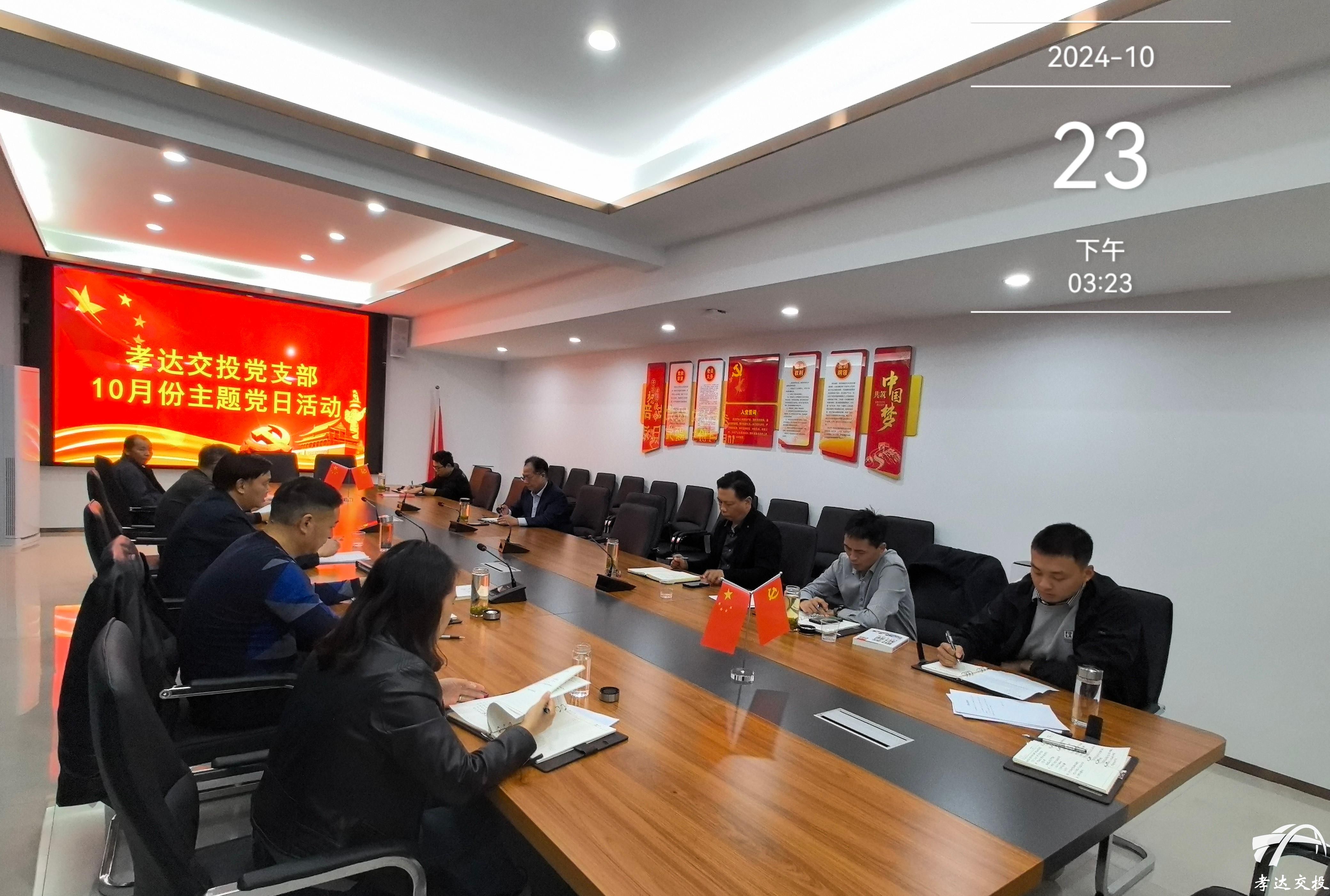 為加強(qiáng)黨員隊(duì)伍思想建設(shè)和組織建設(shè),進(jìn)一步增強(qiáng)黨組織凝聚力,2024年10月23日下午,湖北孝達(dá)交通投資有限公司黨支部在公司二樓會(huì)議室開展10月主題黨日活動(dòng),會(huì)議由黨支部書記何有為主持。
